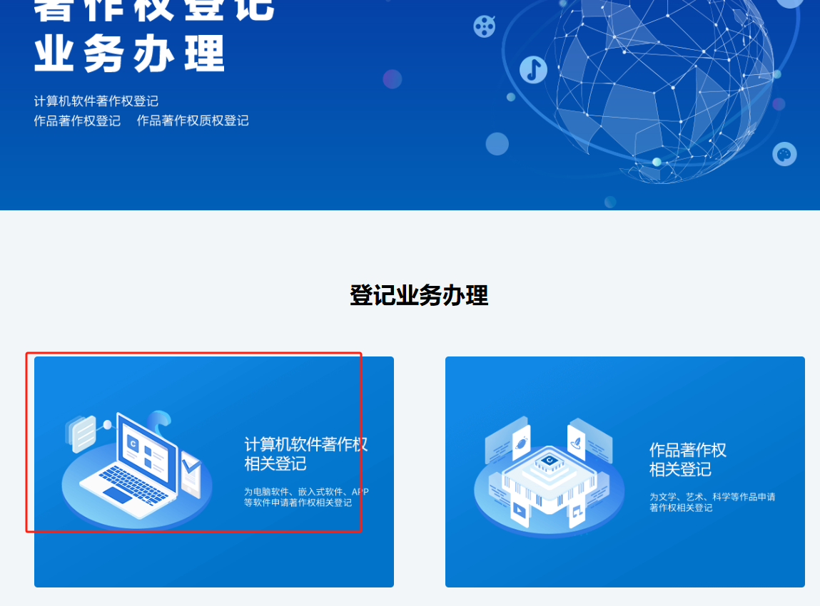 1. 进入申请页面我们可以在电脑浏览器中搜索中国版权保护中心官网,