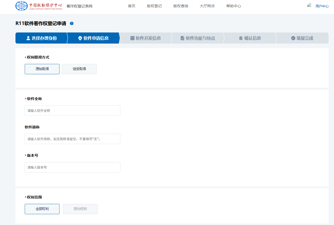 3. 填写软件申请信息
