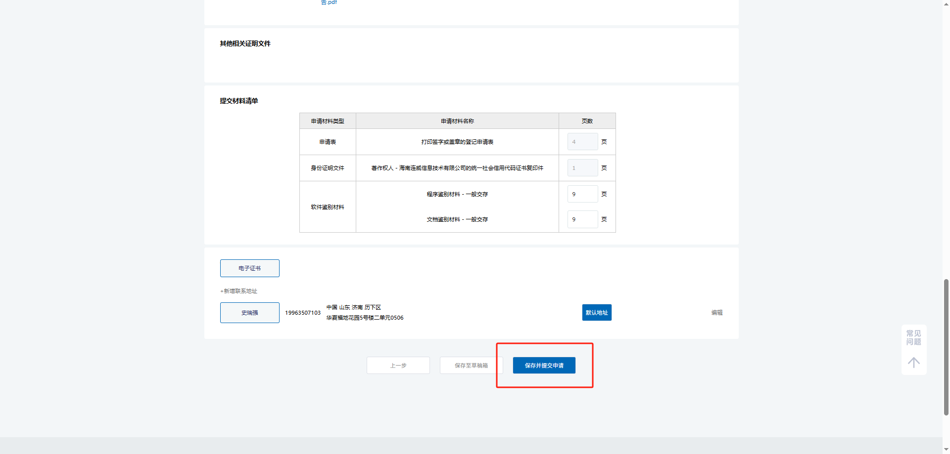 6. 确认信息并提交:进入确认信息界面,在此需再次核对之前填写的信息确保准确无误。自 2023 6 1 日起,不再发放纸质证书,均为电子证书最后点击保存并提交申请