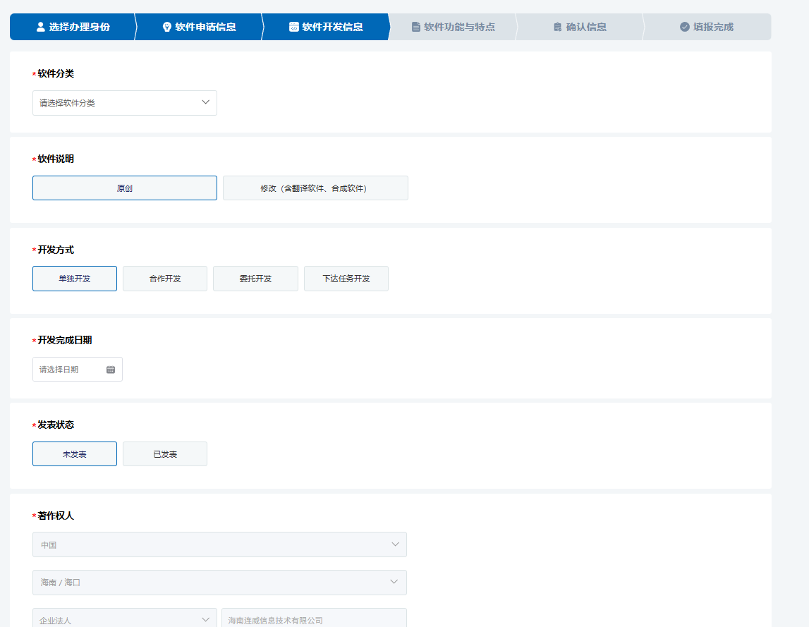 4. 填写软件开发信息